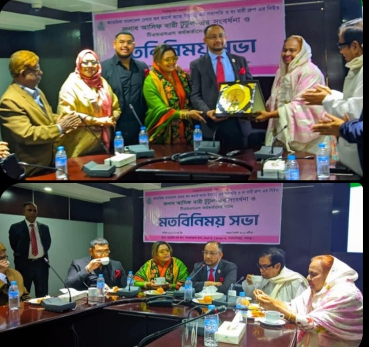 উত্তর জনপদের কৃতি সন্তান, দেশের সমাজ পরিবর্তন ও নারী জাগরণের পথিকৃৎ, বিশিষ্ট শিক্ষাবিদ, সমাজ সেবক, প্রখ্যাত নারী সংগঠক, আনসার-ভিডিপি উন্নয়ন ব্যাংকের নবনির্বাচিত পরিচালক অধ্যাপিকা ডক্টর হোসনে-আরা বেগম প্রতিষ্ঠিত শীর্ষ স্থানীয় ও আন্তর্জাতিক মানের বেসরকারি উন্নয়ন সংস্থা টিএমএসএস কর্তৃক আয়োজিত আমেরিকা বাংলাদেশ চেম্বার অব কমার্স এন্ড ইন্ডাস্ট্রি’র সভাপতি ও দ্যা বারী গ্রুপের সিইও আসিফ বারী টুটুলের সংবর্ধনা প্রদান করা হয়েছে। টিএমএসএস এর আওতাধীন পরিচালিত বগুড়ার ফাইভ স্টার হোটেল মমইনে শুক্রবার বিকালে সংবর্ধনা প্রদান করা হয়। দ্যা বারী গ্রুপের সিইও আসিফ বারী টুটুল হোটেল মমইনে পৌঁছালে তাঁকে টিএমএসএস এর পক্ষ থেকে স্বাগতম জানান অধ্যাপিকা ডক্টর হোসনে আরা বেগম। পরে উভয়ের মধ্যে পারস্পরিক সৌহার্দ ও কুশল বিনিময়ের মাধ্যমে এ উপলক্ষে টিএমএসএস কর্মকর্তাদের সাথে মতবিনিময় অনুষ্ঠিত হয়। আলোচনায় অধ্যাপিকা ডক্টর হোসনে-আরা বেগম টিএমএসএস এর প্রতিষ্ঠা, লক্ষ, উদ্দেশ্য ও টিএমএসএস এর বিভিন্ন সামাজিক ও মানবিক কর্মকান্ড সম্পর্কে আসিফ বারী টুটুল কে অবহিত করেন। তিনি টিএমএসএস এর নানা সামাজিক ও মানবিক কর্মকান্ডের প্রশংসা করেন। পরে আসিফ বারী টুটুল বারী গ্রুপের পক্ষ থেকে টিএমএসএস রিলিজিয়াস কমপ্লেক্সভুক্ত অটিজম, প্রতিবন্ধী স্কুল, পুনর্বাসন কেন্দ্র ও ইয়াতিমখানার অনুকূলে পঁচিশ লক্ষ টাকা অনুসান প্রদানের প্রতিশ্রুতি দেন। আসিফ বারী টুটুল টিএমএসএস পরিচালিত বিভিন্ন জনহিতকর প্রতিষ্ঠানের উন্নয়ন কর্মকান্ডে সর্বদা পাশে থেকে কাজ করারও অঙ্গিকার ব্যক্ত করেন। এ অনুষ্ঠানে বগুড়ার কৃতি সন্তান টিএমএসএস এর এ্যাডভাইজার ফরেন এ্যাফেয়ারস মোস্তাফিজুর রহমান পল্টুকেও সংবর্ধনা প্রদান করা হয়। অনুষ্ঠানে দ্যা বারী গ্রুপের পক্ষে উপস্থিত ছিলেন আসিফ বারী টুটুলের সহধর্মিণী হাসিনা মুনমুন ও তাদের ছেলে প্রমুখ।