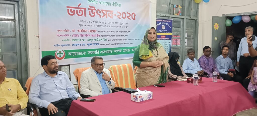 সরকারি এডওয়ার্ড কলেজ, পাবনায় রোভার স্কাউটদের আয়োজনে অনুষ্ঠিত হয়েছে ভর্তা উৎসব ২০২৫। সোমবার (১৫ সেপ্টেম্বর) দুপুরে বিএনসিসি ভবনে আয়োজিত এই উৎসব ছিল দেশীয় খাবারের ঐতিহ্য প্রদর্শনের এক প্রাণবন্ত মঞ্চ।