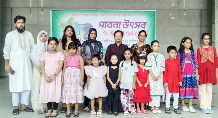 পাবনা প্রতিনিধি: পাবনায় ১৫ অক্টোবর থেকে পাবনা জেলার ১৯৭ তম বর্ষপূর্তি উদযাপন উপলক্ষে ৬ দিনব্যাপী “পাবনা উৎসব ও উদ্যোক্তা মেলা” শুরু হয়েছে। বীর মুক্তিযোদ্ধা রফিকুল ইসলাম বকুল স্বাধীনতা চত্বরে চলমান এই মেলা চলবে ২০ অক্টোবর (সোমবার) পযর্ন্ত। এ উপলক্ষে রবিবার বিকাল ৪টায় কবিতা আবৃত্তি প্রতিযোগিতা (ক গ্রুপ: শিশু থেকে ২য় শ্রেণী # কবিতার নাম- “আমাদের গ্রাম”/কবি বন্দে আলী মিয়া, খ গ্রুপ: ৩য় থেকে ৫ম শ্রেণী # কবিতার নাম- “ঘাসফুল”/ জ্যোতিরিন্দ্র মৈত্র, গ গ্রুপ: ৬ষ্ঠ থেকে দ্বাদশ শ্রেণী # কবিতার নাম- “এদেশে শ্যামল রঙ রমণীর সুনাম শুনেছি” কবি ওমর আলী) অনুষ্ঠিত হয়।