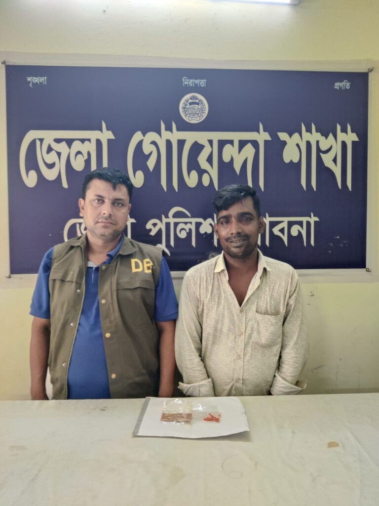 পাবনা জেলা গোয়েন্দা শাখা (ডিবি) মাদকবিরোধী বিশেষ অভিযানে ১০ গ্রাম হিরোইন ও ২৫ পিস ইয়াবাসহ এক মাদক ব্যবসায়ীকে গ্রেফতার করেছে।