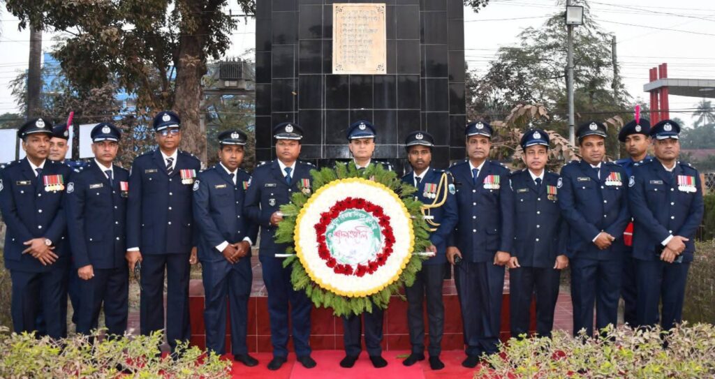 মহান বিজয় দিবস ১৬ ডিসেম্বর ২০২৫ উপলক্ষে মহান মুক্তিযুদ্ধে আত্মোৎসর্গকারী সকল বীর শহীদের প্রতি বিনম্র শ্রদ্ধা জ্ঞাপন করেছে পাবনা জেলা পুলিশ। যথাযথ মর্যাদা, গভীর শ্রদ্ধা ও পূর্ণ ভাবগাম্ভীর্যের মধ্য দিয়ে মঙ্গলবার ১৬ ডিসেম্বর সকাল ৬টা ৩০ মিনিটে দিবসটির সূচনা হয়। এ উপলক্ষে জেলা প্রশাসক কার্যালয় প্রাঙ্গণে অবস্থিত ‘দুর্জয় পাবনা’, পুলিশ লাইনস মাঠে শহীদ পুলিশ সদস্যদের স্মরণে নির্মিত স্মৃতিসৌধ এবং পাবনা জেলা পুলিশের উদ্যোগে নির্মিত বালিয়াহালট স্মৃতিসৌধে পুষ্পস্তবক অর্পণ ও শ্রদ্ধা নিবেদন করা হয়। পাবনার নবাগত পুলিশ সুপার মোঃ আনোয়ার জাহিদের নেতৃত্বে এ শ্রদ্ধা নিবেদন অনুষ্ঠানের মাধ্যমে পাবনা জেলা পুলিশ মহান বিজয় দিবস ২০২৫ উদযাপন করে। পুষ্পস্তবক অর্পণ শেষে পুলিশ সুপার মোঃ আনোয়ার জাহিদসহ জেলা পুলিশের ঊর্ধ্বতন কর্মকর্তাগণ জাতির সূর্যসন্তান শহীদ বীর মুক্তিযোদ্ধা এবং মহান মুক্তিযুদ্ধে আত্মোৎসর্গকারী সকল শহীদের প্রতি গভীর সম্মান ও কৃতজ্ঞতা প্রকাশ করেন। অনুষ্ঠানে উপস্থিত ছিলেন পাবনা জেলার অতিরিক্ত পুলিশ সুপার (ক্রাইম এন্ড অপস্) মোঃ রেজিনুর রহমান, পাবনা সদর সার্কেলের অতিরিক্ত পুলিশ সুপার মোঃ শরিফুল ইসলামসহ জেলা পুলিশের অন্যান্য ঊর্ধ্বতন কর্মকর্তাগণ। এ সময় মহান মুক্তিযুদ্ধের চেতনা ধারণ করে দেশপ্রেম, শৃঙ্খলা ও পেশাদারিত্বের মাধ্যমে জনগণের সেবা অব্যাহত রাখার প্রত্যয় ব্যক্ত করেন জেলা পুলিশের কর্মকর্তাগন। মহান বিজয় দিবস উপলক্ষে এ শ্রদ্ধা নিবেদন কর্মসূচির মাধ্যমে স্বাধীনতার জন্য জীবন উৎসর্গকারী শহীদদের স্মরণ এবং নতুন প্রজন্মের মাঝে মুক্তিযুদ্ধের চেতনা জাগ্রত করার আহ্বান জানানো হয়।